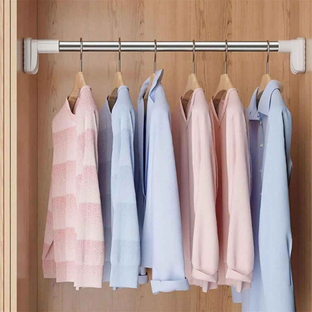 ✔️You can freely combine the rods' placement so that closets or shelves will have more space. Easy to use, no screws required, rubber tip to protect closets and never no holes.