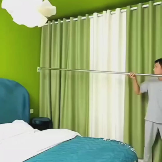 A: The extension part of the Tension Rod rotates out. After it is suitable for your own use length, the delay part is compressed in the opposite direction.